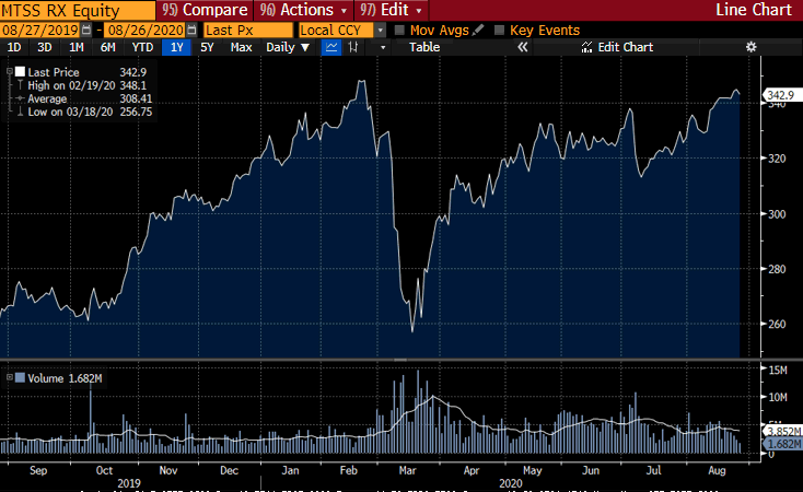 На прошлой неделе компания МТС, ведущий оператор мобильной связи в России, опубликовала результаты за 2 кв 2020 г. по МСФО, которые превзошли согласованные прогнозы аналитиков. Акции компании c момента публикации результатов подросли на 0,2%.