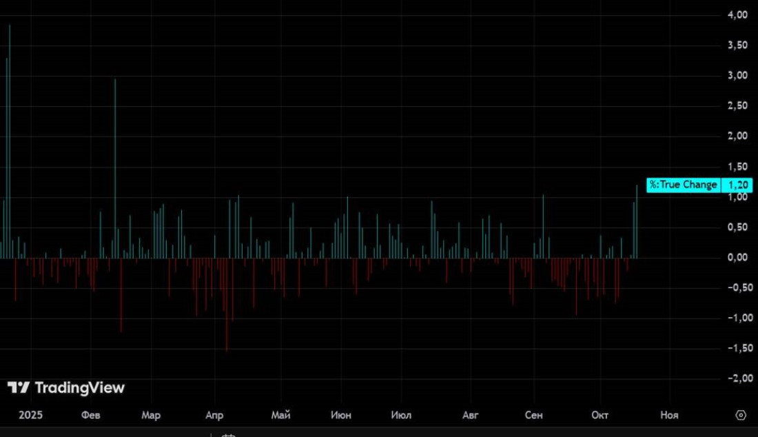 Дневной рост индекса государственных облигаций. Пятница, 17.10 — один из лучших дней в этом году.
