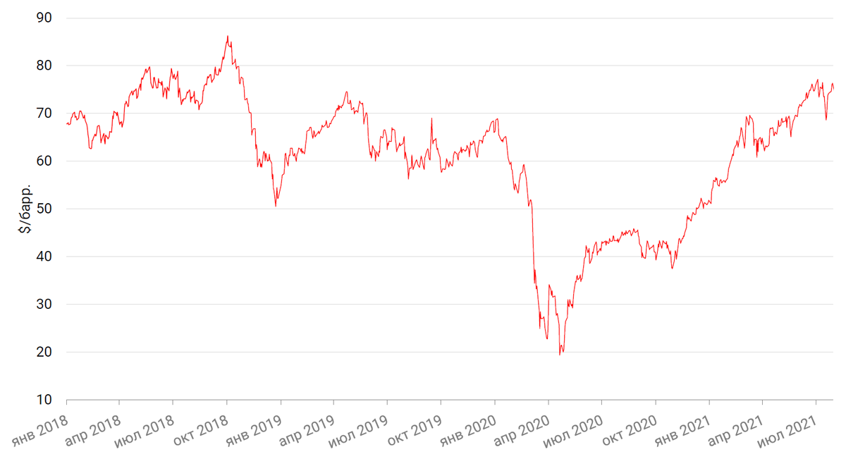Цены на нефть сорта Brent на минувшей неделе выросли на 3,01% на фоне ослабления опасений относительно баланса спроса и предложения на рынке нефти. Так, опасения, связанные с замедлением мировой экономики ввиду быстрого распространения варианта «дельта» коронавируса в ряде европейских стран, были нивелированы сообщениями о снижении запасов нефти в США на 4,1 млн барр. За прошлую неделю - до 435,6 млн. барр. против ожиданий снижения на 2,9 млн. барр. При этом, по данным Baker Hughes, число действующих нефтяных буровых установок в США за неделю снизилось до 385 единиц.