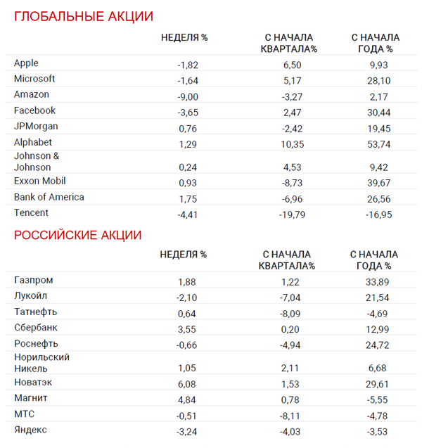 Источник – Вloomberg; Данные рассчитаны с закрытия торгового дня пятницы до закрытия торгового дня предыдущей пятницы