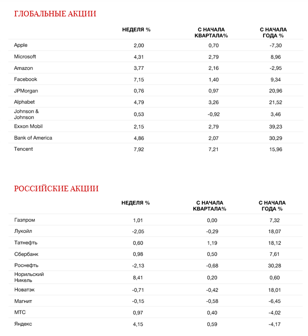 Источник – Вloomberg; Данные рассчитаны с закрытия торгового дня пятницы до закрытия торгового дня предыдущей пятницы