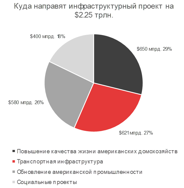 Рынки позитивно оценили перспективы принятия нового плана развития инфраструктуры США, подразумевающего расходы в 2,25 трлн. долл. в течение 8 лет, представленного президентом США Джо Байденом в среду, 31 марта. Большая часть средств будет направлена на модернизацию транспортной инфраструктуры, соц. проекты, а также строительство и ремонт жилья. С другой стороны, покрыть инвестиции в инфраструктуру планируется за счет увеличения корпоративного налога с 21% до 28%, а также увеличения налогообложения на зарубежную прибыль корпораций с 11% до 21%. По подсчетам Goldman Sachs, повышение налогов может вызвать снижение прибыли на акцию компаний из индекса S&P 500 на 9%. Значительнее всего (до 10% прибыли на акцию) повышение двух видов налогов может сказаться на коммуникационном и IT секторе за счет высокой доли зарубежной прибыли. Меньше всего новая программа может повлиять на энергетический сектор и сектор материалов. Однако участники рынка ожидают, что план повышения налогов встретит значительное сопротивление в Конгрессе со стороны республиканцев, и его окончательная версия может претерпеть изменения.