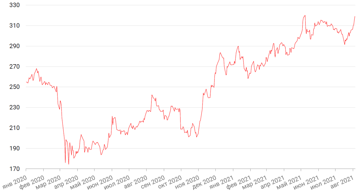 Ключевым событием прошедшей недели в США стала публикация июльского отчета по рынку труда. Так, число занятых в несельскохозяйственном секторе в июле выросло на 943 тыс. чел., что превзошло ожидания в 870 тыс. чел. В свою очередь, безработица в США в июле упала до 5,4% против уровня в 5,9% в июне и ожиданий на уровне 5,7%. Восстановление рынка труда до уровня, предшествующего пандемии, традиционно является благоприятным для акций, однако фондовый рынок может интерпретировать данный отчет не только как хорошую новость, но и как повод для ФРС США начать сворачивание объемной программы ликвидности. Во всяком случае некоторые представители ФРС США на прошлой неделе уже высказали идею о начале сворачивания QE в сентябре.