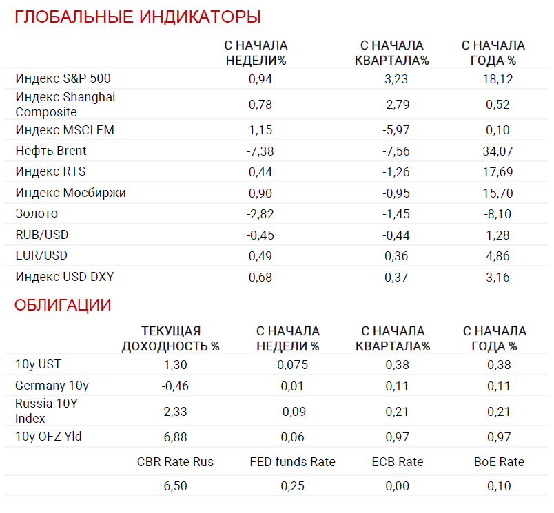 По итогам прошедшей недели большинство глобальных индексов закрылись в «зеленой зоне» на фоне выхода сильных макроэкономических данных, а именно июльского отчета по рынку труда. Индексы S&P 500 и индекс Dow Jones Industrial Average закрылись в пятницу 6 августа на рекордных максимумах: S&P - на отметке 4 437 пунктов (+0,9%), а Dow Jones Industrial Average – на отметке 35 209 пунктов (+0,8%); индекс Nasdaq Composite стал лидером на неделе среди американских индексов, закрывшись с повышением на 1,1%.