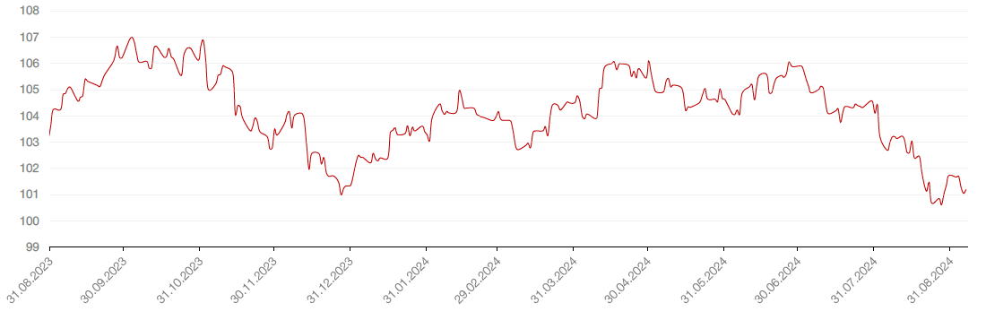 Индекс доллара за предыдущую неделю снизился на 0,51% на фоне укрепления евро на 0,33% с 1,1048 до 1,1084 долларов за евро и йены на 2,65% со 146,17 до 142,3 йен за доллар. В целом на глобальных валютных рынках наблюдается затишье перед заседанием ФРС США на следующей неделе в среду. На фоне выходящих в последнее время данных рынки ориентируются на агрессивное снижение ставки до 4,25% к концу года. При этом инвесторы также настроены на снижение ставки ЕЦБ на 25 б.п.