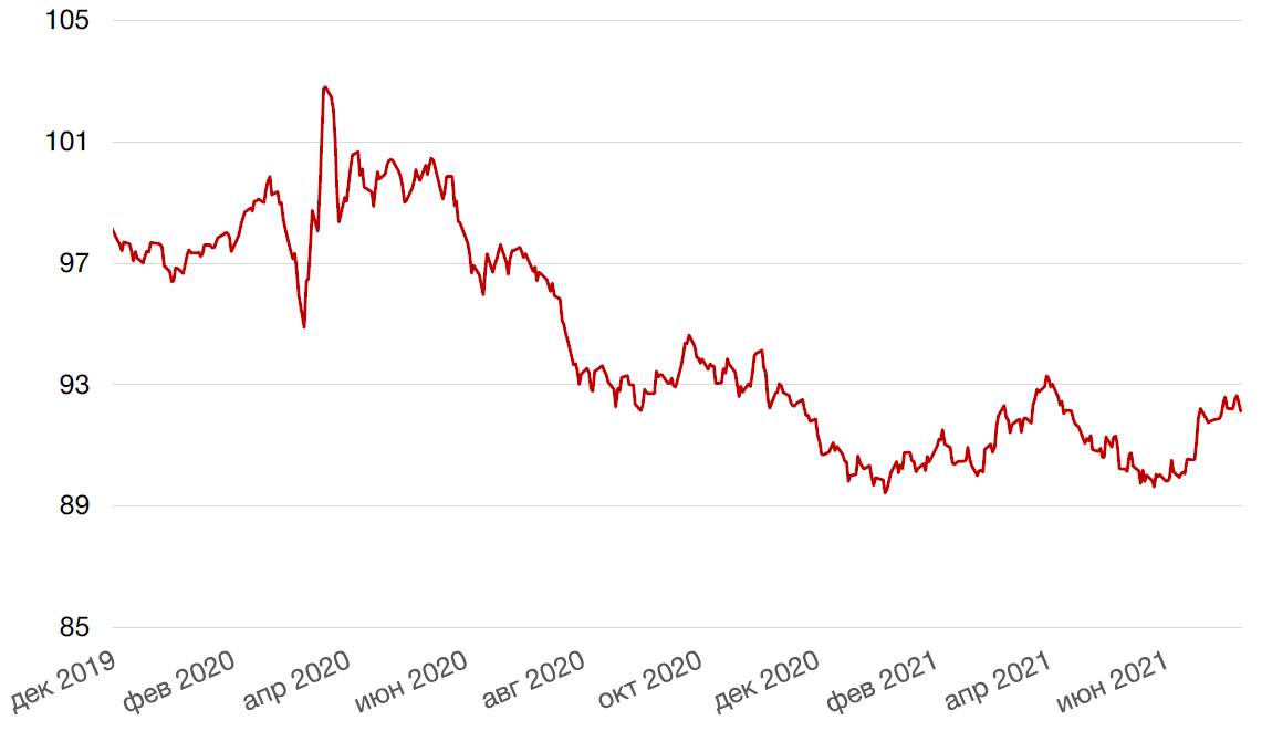 Доходности казначейских облигаций США проигнорировали протокол июньского заседания ФРС как дела давно минувших дней, зато резко отреагировали на новую волну заражений коронавирусом. Опасения инвесторов относительно экономики, обусловленные новым витком пандемии COVID-19, привели доходность 10-летних бумаг к уровню ниже 1,3% годовых в четверг, и только в пятницу доходность немного скорректировалась вверх до 1,36%, закрывшись выше 5-месяных минимумов. Как заявила на прошлой неделе глава ФРБ Сан-Франциско Мэри Дейли, новые штаммы и низкие темпы вакцинации в различных регионах остаются источником серьезных рисков для экономики. На более дальнем конце кривой доходности снижение составило еще более солидную величину. Так, 30-летние бумаги показали за последние 1,5 месяца рост примерно на 8 процентных пунктов.