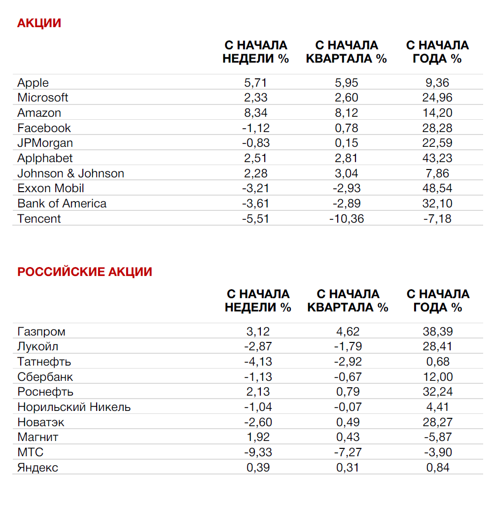 Источник – Вloomberg; Данные рассчитаны с закрытия торгового дня пятницы до закрытия торгового дня предыдущей пятницы