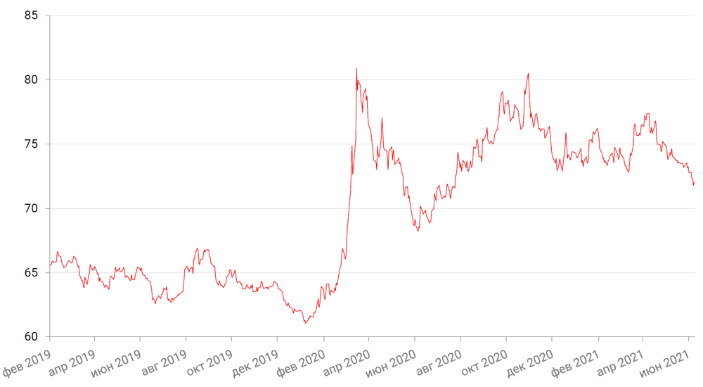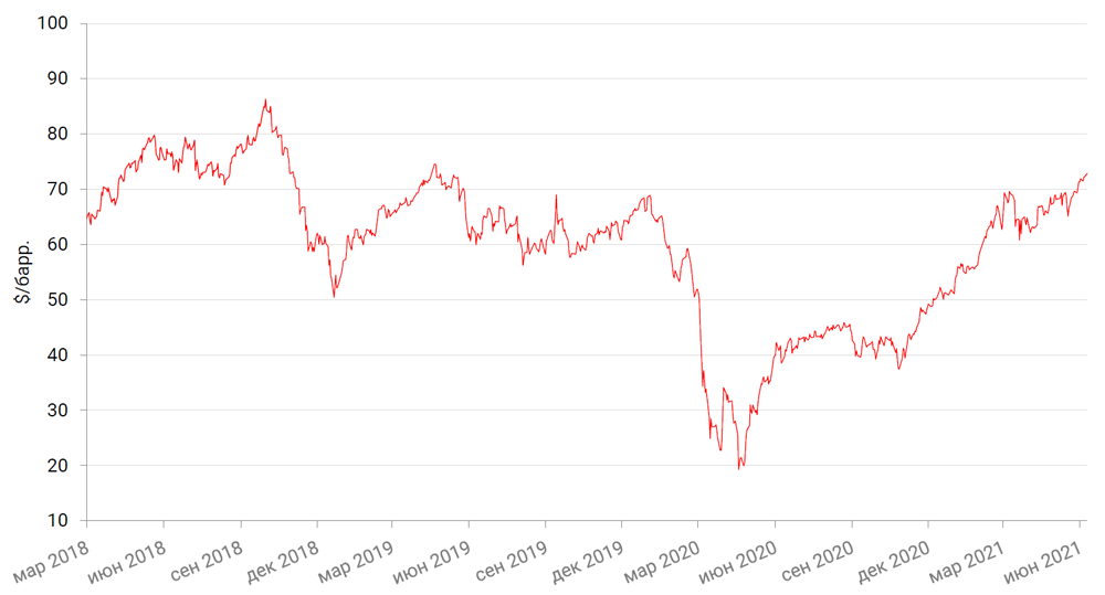 Цены на нефть сорта Brent на минувшей неделе повысились на 1,11% на фоне увеличения мирового спроса на нефть в связи с началом летнего автомобильного сезона в США и увеличения числа авиаперелетов на фоне смягчения карантина. Ежедневное количество авиапассажиров в США превысило 2 миллиона человек впервые с начала пандемии, что подтверждает наличие высокого спроса на топливо в летний период. По последним оценкам, ожидается, что потребление сырья вернется к докризисным уровням в следующем году, что, вероятно, потребует от ОПЕК+ дальнейшего увеличения добычи нефти для удовлетворения растущего спроса.