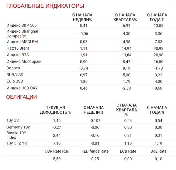 Европейские рынки акций завершили неделю на рекордных отметках на фоне усиливающихся надежд на восстановление мировой экономики, несмотря на рост инфляции в США. Так, панъевропейский индекс STOXX 600 вырос на 1,1%, французский индекс CAC40 вырос на 1,3%, немецкий DAX остался неизменным, а британский FTSE 100 вырос на 0,9%. Европейские бумаги показывают рост уже в течение восьми торговых сессий подряд - это самый продолжительный период роста с 2019 г.