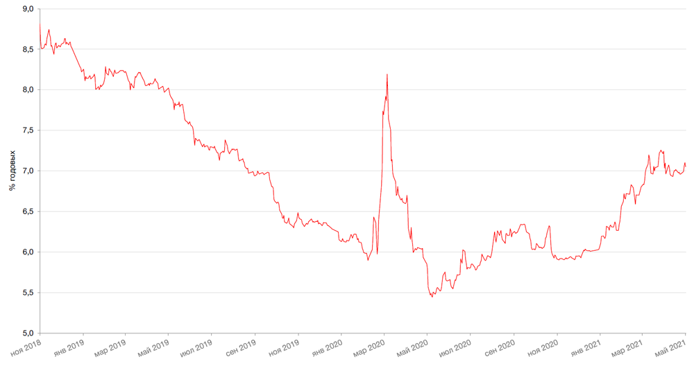 Доходность 10-летних ОФЗ с начала года выросла примерно на 1 п.п. до уровней выше 7% годовых.