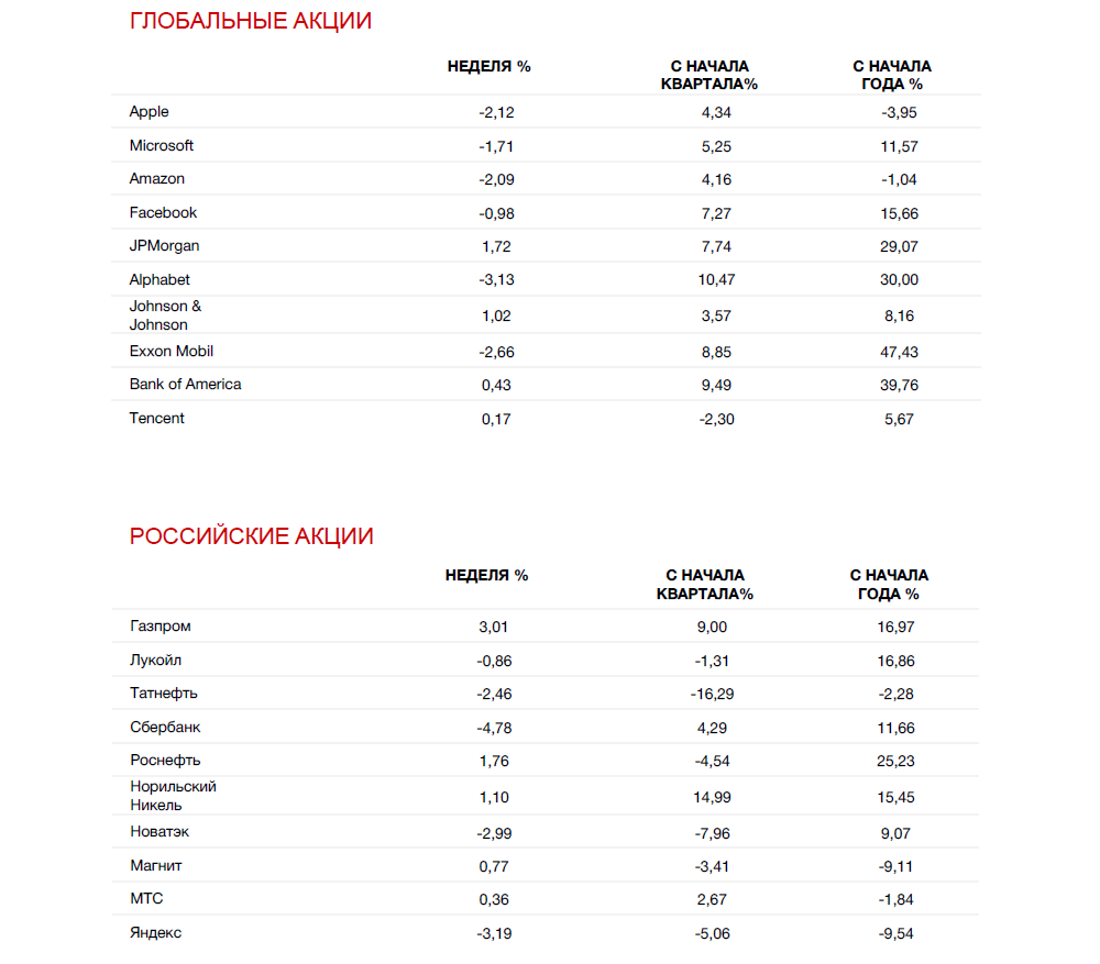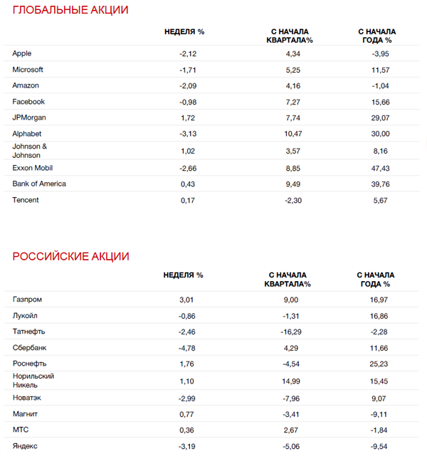 Источник – Вloomberg; Данные рассчитаны с закрытия торгового дня пятницы до закрытия торгового дня предыдущей пятницы