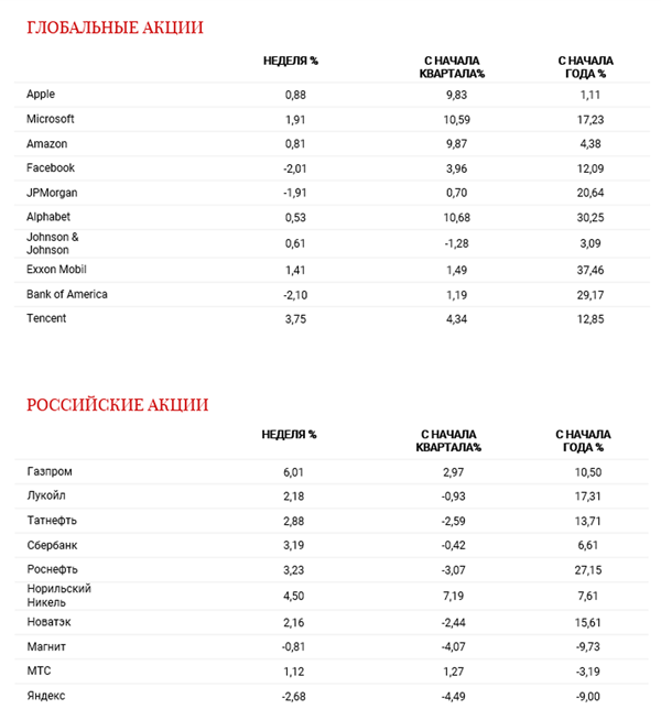 Источник – Вloomberg; Данные рассчитаны с закрытия торгового дня пятницы до закрытия торгового дня предыдущей пятницы
