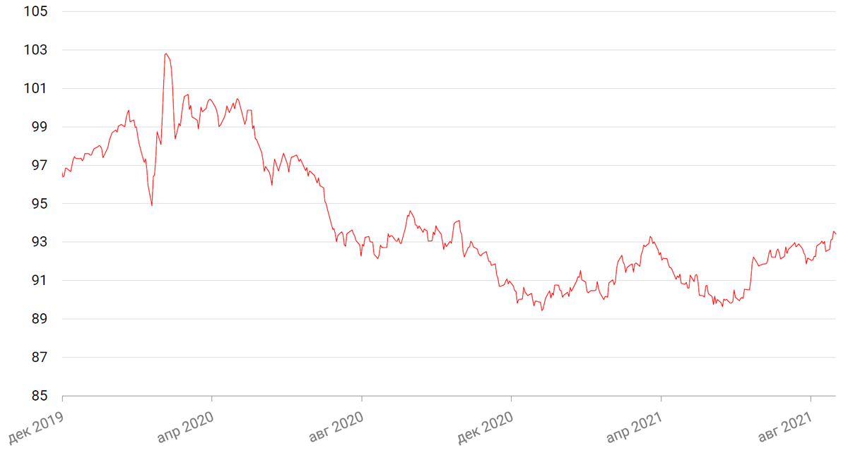 Доллар США завершил неделю ростом на 1,06% по отношению к ведущим мировым валютам, превысив мартовские максимумы и вернувшись к уровням середины ноября 2020 года после публикации протоколов июльского заседания ФРС США и на ожиданиях скорого объявления о сворачивании QE.