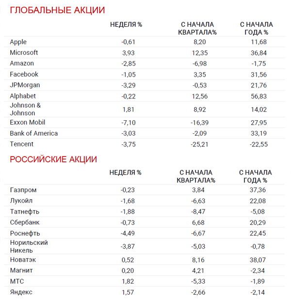Источник – Вloomberg; Данные рассчитаны с закрытия торгового дня пятницы до закрытия торгового дня предыдущей пятницы