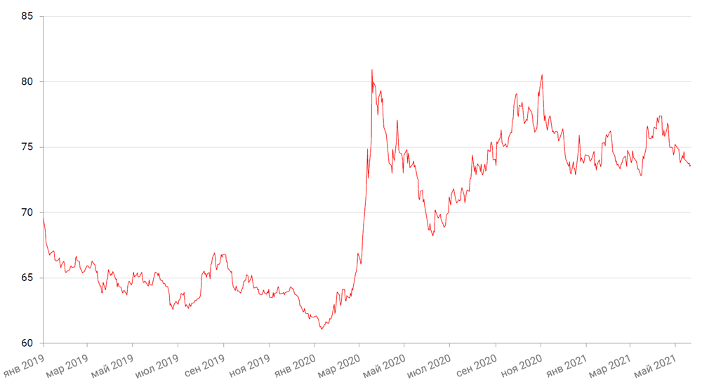 Нефтяные котировки на минувшей неделе снизились на 3,30% (Brent), что является самым большим недельным снижением с марта текущего года. Рынок ожидает возвращения на рынок иранской нефти после новостей о том, что в переговорах между Ираном и США по «ядерной сделке» достигнут прогресс, и Соединенные Штаты могут отменить санкции в отношении нефтяного, банковского и судоходного секторов Ирана. Еще одним негативным фактором для нефти стало ускоренное распространение коронавируса в Индии. Поддержку нефти в ближайшее время может оказать увеличение спроса на нефть по мере открытия и восстановления экономики Европы и активного открытия бизнеса в США.