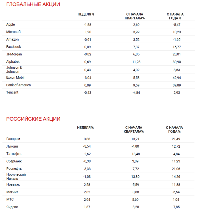 Источник – Вloomberg; Данные рассчитаны с закрытия торгового дня пятницы до закрытия торгового дня предыдущей пятницы
