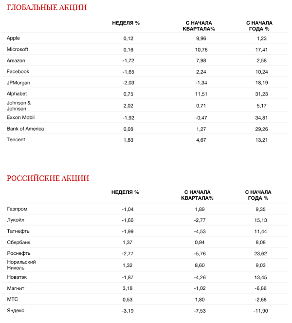 Источник – Вloomberg; Данные рассчитаны с закрытия торгового дня пятницы до закрытия торгового дня предыдущей пятницы