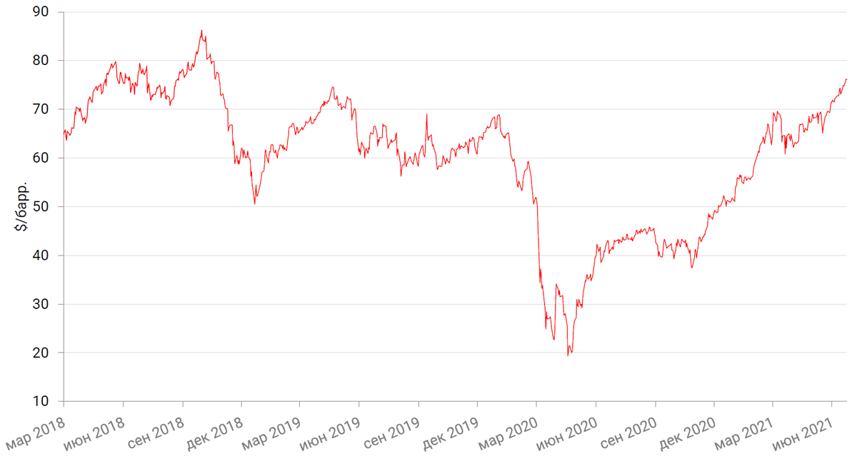 Цены на нефть сорта Brent на минувшей неделе выросли на 3,63%, достигнув уровня октября 2018 года на фоне восстановления спроса на нефтепродукты в США и Европе, продолжающемся падении запасов нефти в США и приостановки переговоров с Ираном по ядерной сделке, а также отсутствии роста производства и снижения запасов. По данным Минэнерго США, запасы сырой нефти в стране сократились на 20,4 миллиона барр. (по сравнению со средними значениями в мае).