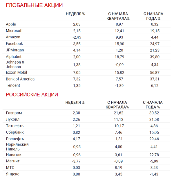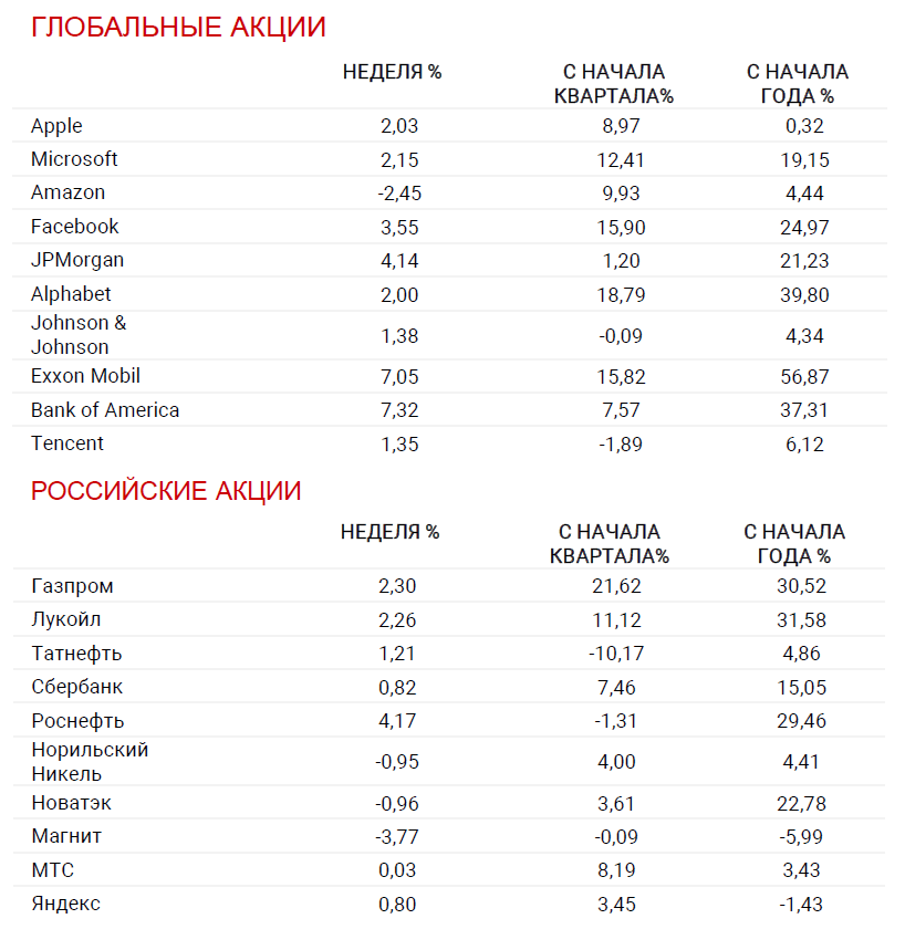 Источник – Вloomberg; Данные рассчитаны с закрытия торгового дня пятницы до закрытия торгового дня предыдущей пятницы