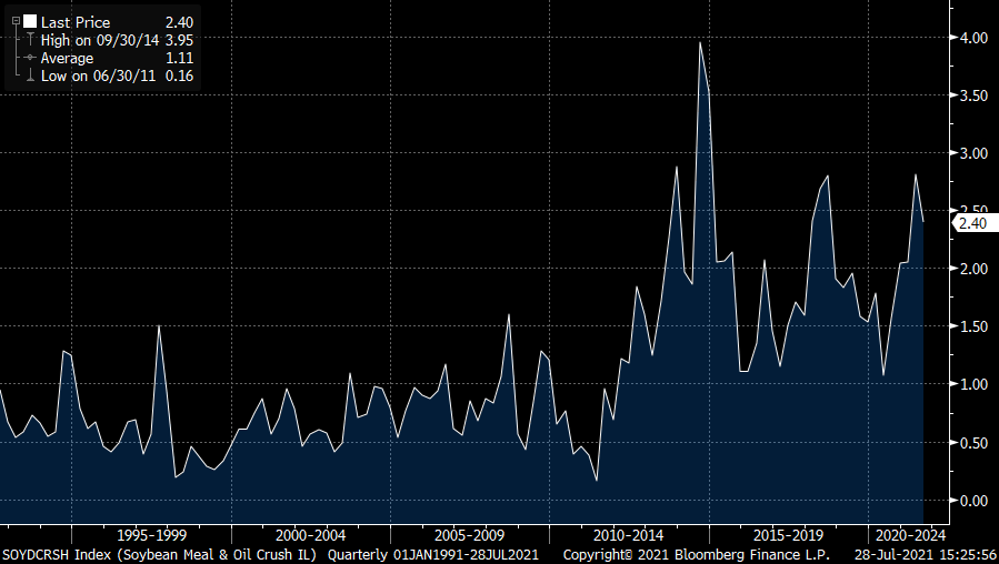 На волне пандемии спред между растительным сырьем и растительными маслами достигает пиков (в долл. США)