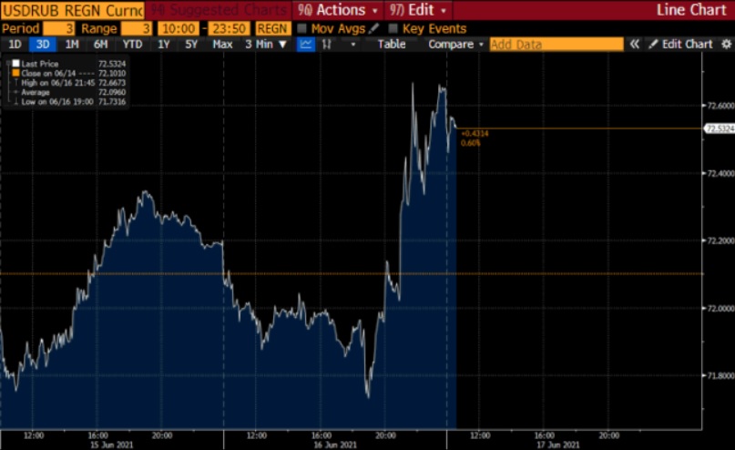 На рынки также оказывают итоги вчерашнего заседания ФРС США, в том числе обновленный прогноз регулятора по ставке, который предполагает два повышения ставки к концу 2023 года.