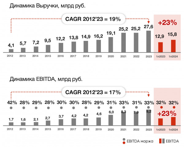 Компания характеризуется высокими темпами роста выручки и прибыли и высокой рентабельность – более 30% по EBITDA на протяжении последних 4 лет и более 20% по чистой прибыли.