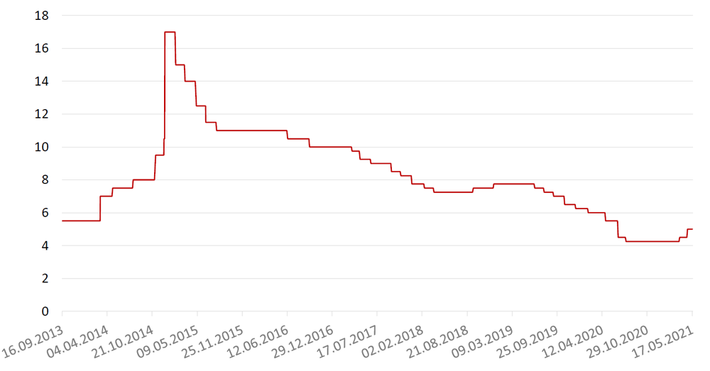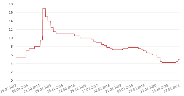 Ключевая ставка ЦБ РФ, %