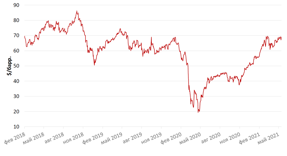 Цены на нефть сорта Brent повысились в апреле на 5,8% до уровня выше $67/барр., несмотря на то, что в апреле страны ОПЕК+ приняли решение об увеличении добычи на 350 тыс. барр./сутки в мае и июне и на 441 тыс. барр./сутки в июле. Односторонние ограничения решила смягчить и Саудовская Аравия, которая обеспечивала снижение добычи ниже квоты еще на 1 млн барр./сутки. Таким образом, за ближайшие три месяца рост предложения нефти от ОПЕК+ должен составить более 2 млн барр./сутки. Тем временем, в США, несмотря на рост буровой активности, объемы добычи нефти пока не возросли и остаются на уровне около 11 млн барр./сутки.