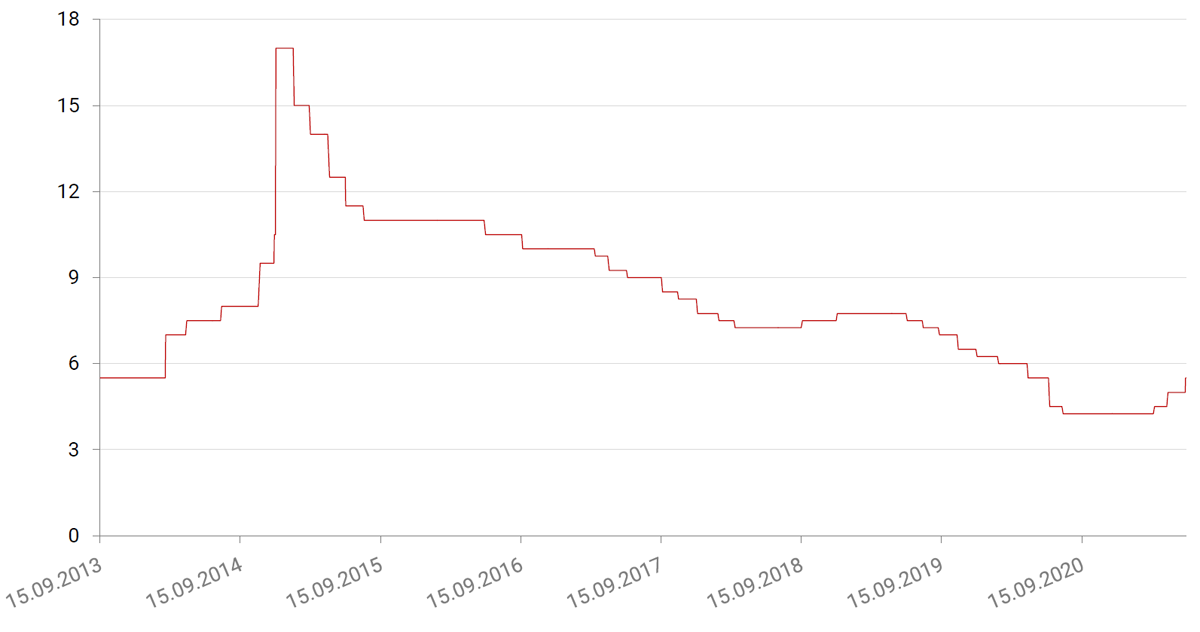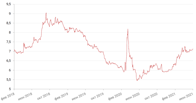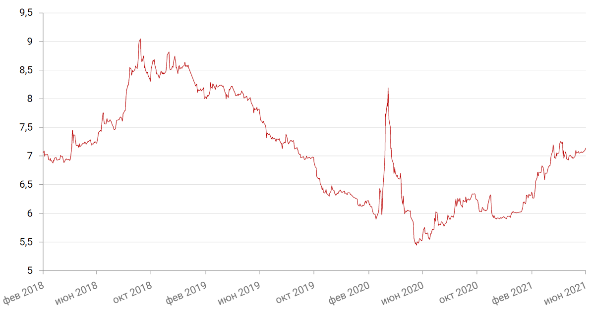 В своем выступлении на ПМЭФ в начале июня глава ЦБ РФ Э. Набиуллина отметила, что инфляция, которую подтолкнули временные факторы, такие как выход из карантинных ограничений, начинает приобретать постоянный характер, что требует более активного вмешательства монетарных властей. Другие представители ЦБ также отмечали, что ЦБ будет, вероятно, решать между повышением на 25 и 50 б.п., нежели между повышением или сохранением ставки на прежнем уровне.