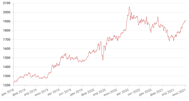 Что касается золота, то его цена в мае подскочила на 7,8% на фоне усиления проинфляционных факторов в глобальном контексте.