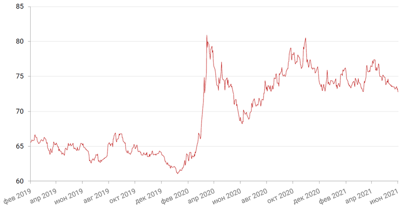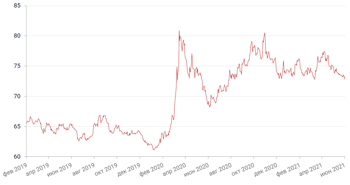 Мы пока сохраняем положительный взгляд на рубль в текущем году, однако потенциал укрепления российской валюты в летние месяцы выглядит не слишком убедительно. Во-первых, второй квартал – традиционно слабый с точки зрения счета текущих операций. Кроме того, набирающий обороты дивидендный сезон может оказать давление на рубль, поскольку иностранные инвесторы будут конвертировать выплату в валюту, хотя российские компании-экспортеры, напротив, должны будут продавать валютную выручку под дивиденды. По оценкам ВТБ, совокупный объем дивидендных выплат составляет около $27,4 млрд, из которых в валюту может быть конвертировано порядка $7 млрд. Еще одним негативным для рубля фактором может выступить отмена с 1 июля обязательной репатриации валютной выручки для компаний в сфере несырьевого неэнергетического экспорта.