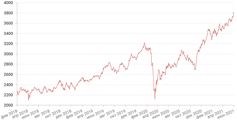В мае рынки находились под влиянием разнонаправленных тенденций. С одной стороны, прогресс в области вакцинации способствовал все большему открытию глобальной экономики, а соответственно восстановлению спроса. А с другой стороны, в середине месяца на первый план вышли опасения по поводу разгона инфляции. Базовый индекс потребительских цен в США за апрель показал самый значительный рост с 1982 г. – на +4,2% г/г, что существенно выше целевого показателя ФРС США (2%). Индекс цен производителей за месяц также оказался выше ожиданий. Основной удар инфляционных опасений пришелся по акциям технологических компаний. Впоследствии монетарным властям удалось убедить рынки, что действие проинфляционных факторов временное и в значительной степени обусловлено эффектом низкой базы прошлого «карантинного» года, а также всплеском цен после снятия ограничений. Кроме того, центробанки в унисон заявляли о намерении продолжать оказывать поддержку экономикам и не спешить со сворачиванием стимулирующих мер. В результате по итогам месяца индексу S&P 500 удалось укрепиться на 0,6%. Развивающиеся рынки выступили в мае более успешно, показав рост на 2,1%.