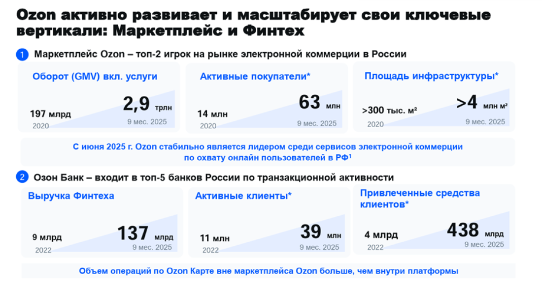 Компания Ozon объявила сильные результаты за 3 кв. и 9 мес. 2025 г., повысила прогнозы на 2025 г., а также анонсировала обратный выкуп акций и первые в истории компании дивиденды в размере 143,55 руб.