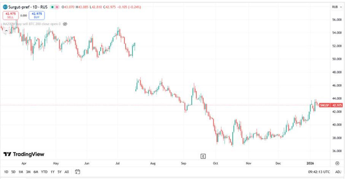 Помимо общерыночных рисков, основным риском для префов «Сургутнефтегаза» остаётся динамика курса рубля. В случае продолжения укрепления национальной валюты в 2026 г. дивиденды за 2026 г. по данным бумагам вновь могут оказаться несущественными, а акции SNGSP — снизиться в цене.