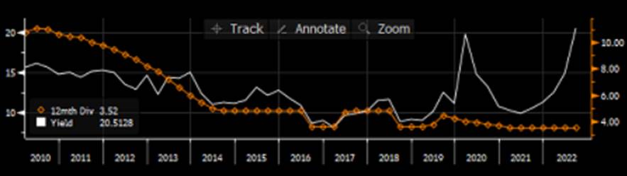 Текущая индикативная дивидендная доходность составляет 20,79% (но может быть умеренно понижена)